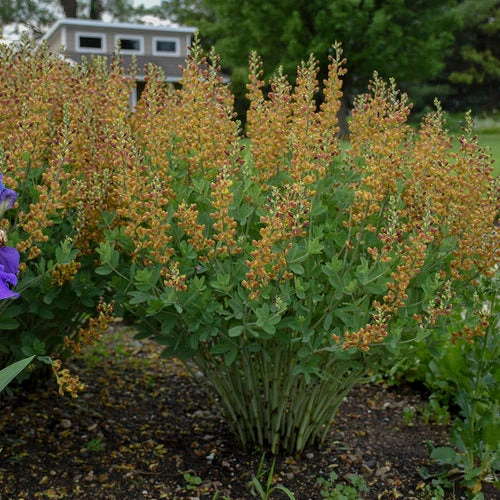 Unique maroon and yellow flowers age to gold. Attractive seed pods in early summer follow the flowers. Excellent for back of the border. Blends well with most American native species and grasses for meadow gardens. Great as a cut flower.