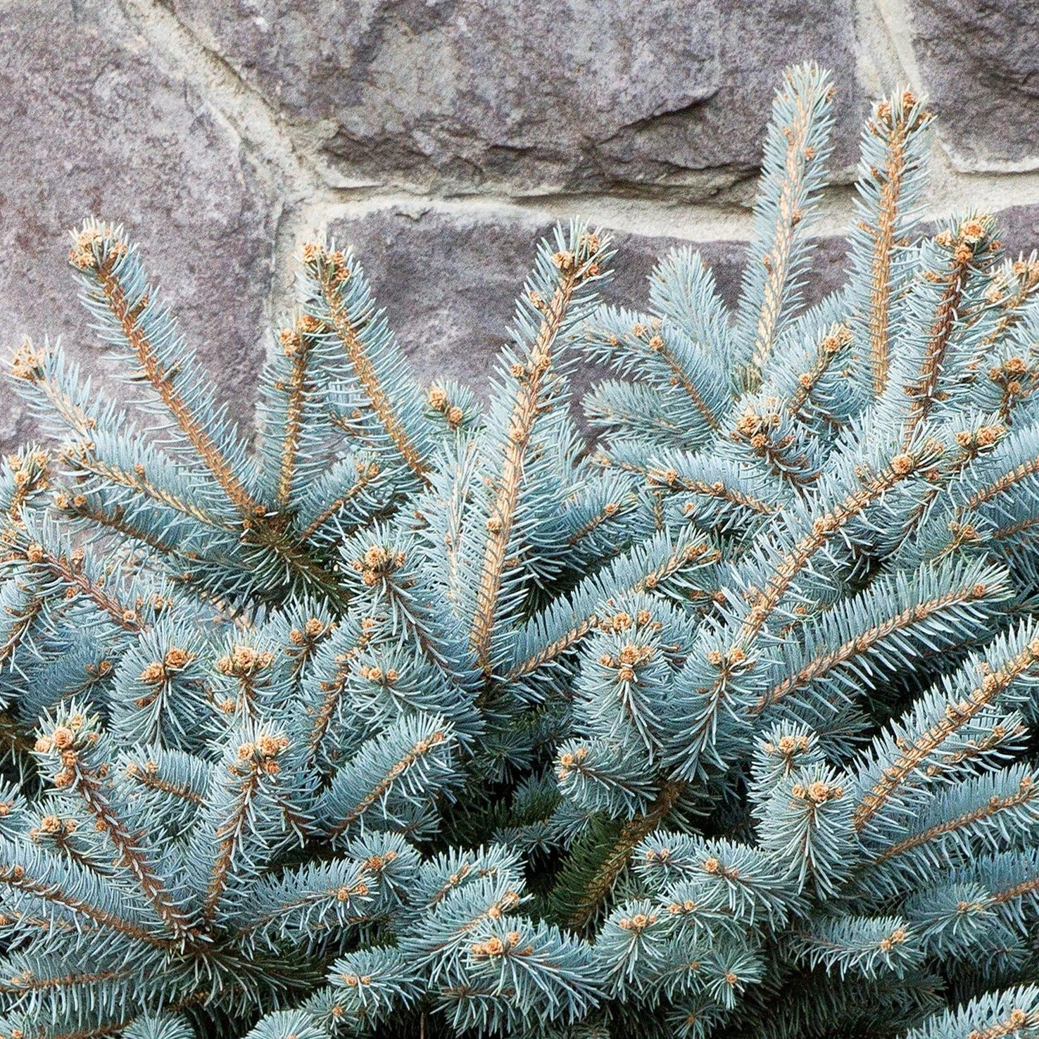 This charming, globe-shaped evergreen shrub is dwarf, flat-topped and densely branched. The bright blue needles hold their color all year long, but are a brighter hue in summer. Provides a unique accent for that special spot in the garden.
