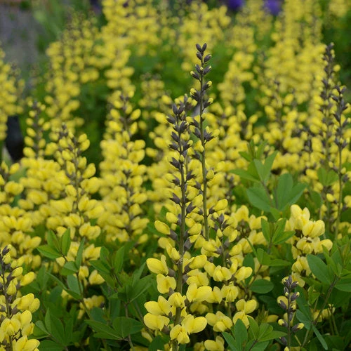 An upright, vase-shaped mound of attractive blue-green foliage topped with long, charcoal stems which carry the lemon yellow flowers in late spring to early summer. The contrast of dark stems with light flowers really pops in the landscape, delivering an excellent floral display. Ornamental seed pods extend the season of interest into fall. Baptisia is easy to grow and will thrive with little maintenance. There are many potential applications in the landscape including meadow plantings, as a backdrop in borders, or as a specimen. Plants are very long-lived once established.