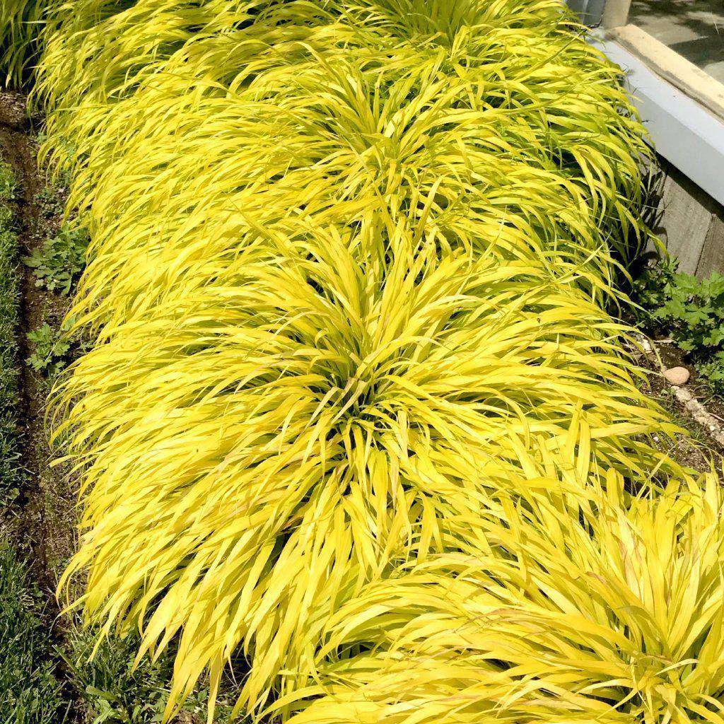 Beautiful ornamental grass for shade! Graceful plumes top this wonderful ornamental grass with bright, golden-yellow foliage. An excellent choice mixed into borders, used as an edging, or planted en masse. One of our favorites. Bamboo-like foliage.