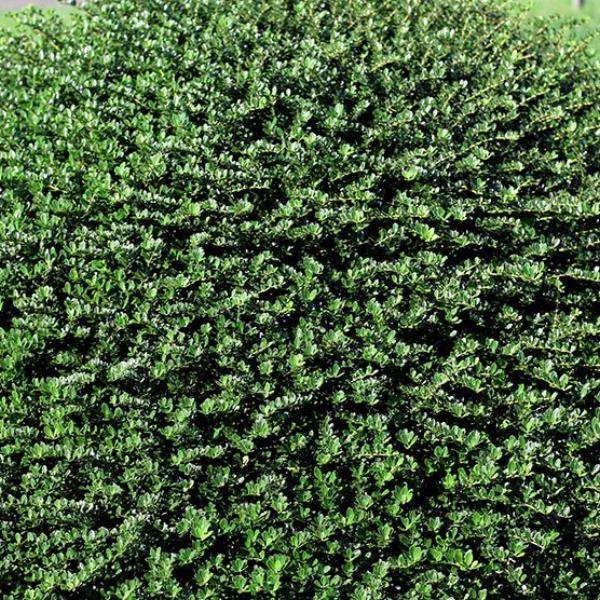The Mushroom Holly! Small leafed form with frosty rich green foliage, very compact and behaved habit forms a low and dense mound, self branching.