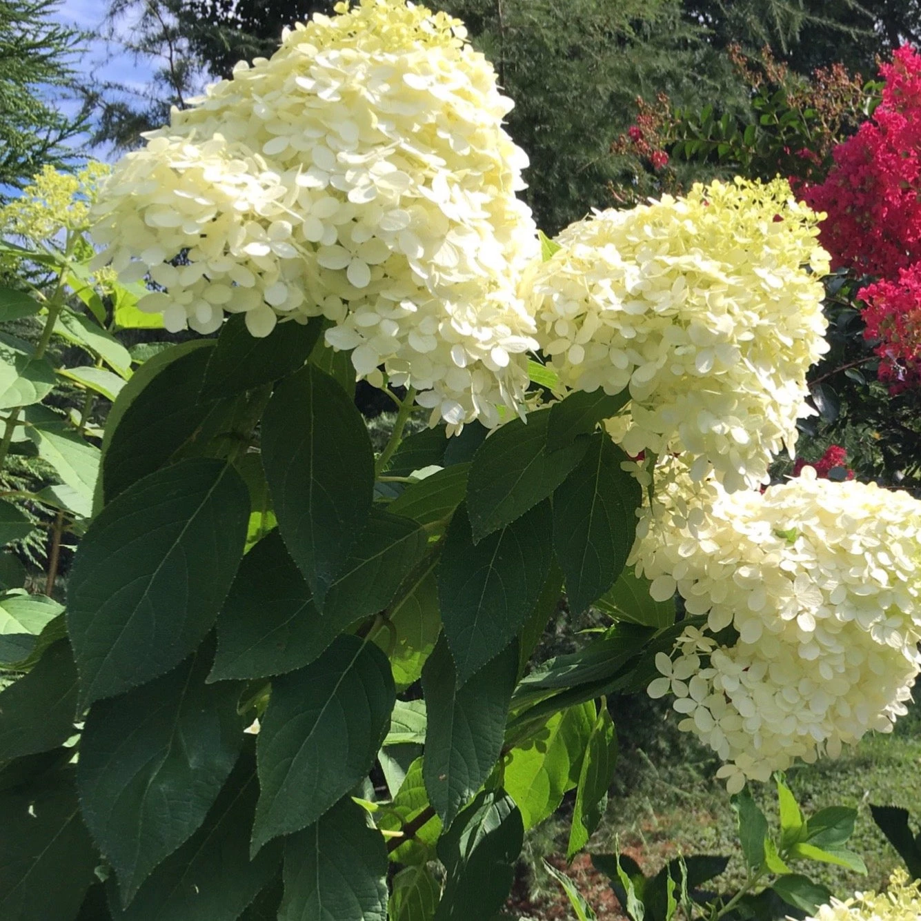 Upright clusters of white flowers mature to chartreuse before turning rose-mauve in late summer and fading to beige in fall. Brilliant red fall foliage color. Great accent or specimen plant.Â