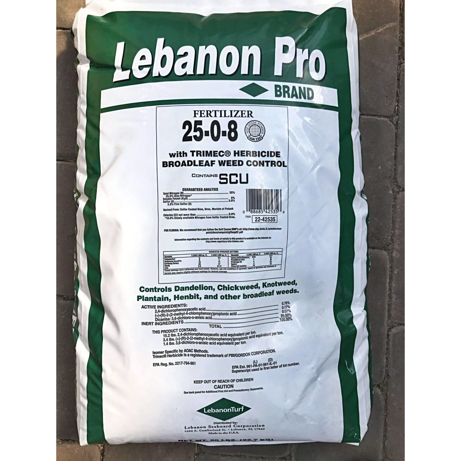 - Lawn fertilizer with Trimec Broadleaf Weed Control