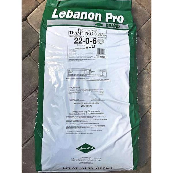Our “Step 1”, this is a lawnĀ fertilizer containing Team, a preemergence herbicide for control ofĀ crabgrass, foxtail,Ā goosegrass, Poa annua and other annual grasses and broadleaf weeds in established turfgrass and landscape ornamentals. This should be applied anytime between April 1st and May 15th. Treats 15,000 Square feet.Ā 22-0-6