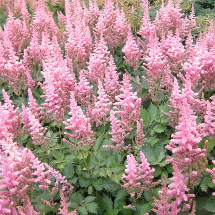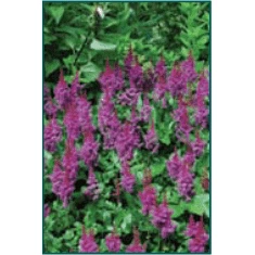 Bright mauve fragrant plumes on sturdy stems make a show against the dark fern-like foliage. Tolerates more sun and drought than other Astilbe. Perfect in woodland gardens and mass plantings. Summer bloom.