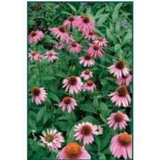 A selection with larger 6″ wide, more vibrantly colored flowers than the species. From a central brown cone the magenta rose petals are held flat, rather than drooping like the species. Coneflowers bloom in summer and fall, forming a showy, upright clump which is a favorite feeding station for many butterflies.
