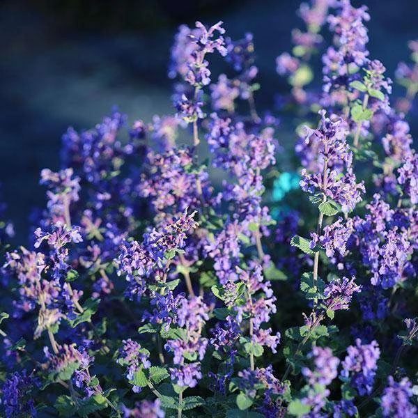 A dwarf, mounding perennial with abundant trumpet-shaped dark blue flowers on the aromatic grey-green foliage. Plant at the edge of the garden or in mass plantings. Summer bloom.