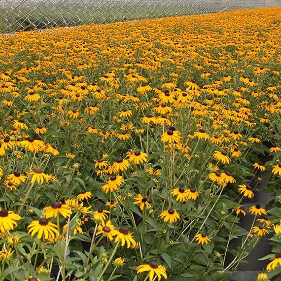This native form of the Black-eyed Susan is longer flowering than the more familiar garden selection ‘Goldsturm’, continuing well into October in many regions. Plants are of medium habit, bearing loads of golden-orange daisies with a dark brown eye. Superb cut flower. Foliage is shiny and heat tolerant. Slightly smaller blooms. Seed heads have good winter interest. A terrific choice for mass planting, combining especially well with ornamental grasses. Removing faded flowers regularly will greatly increase the blooming time.