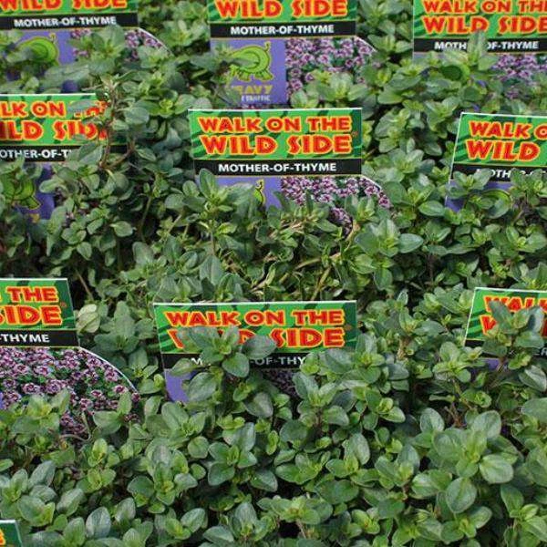Low-care groundcover of soft grey/green foliage smothered in lavender flower in early summer.