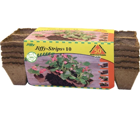 All natural, pre-formed strips made from Canadian sphagnum peat moss and wood pulp. 100% biodegradable so individual squares can be planted directly into the ground or larger container. Bottom holes provide drainage and promote strong root development. Each strip is made up of eight square pots.