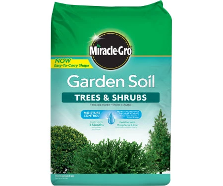 Miracle-Gro Garden Soil Trees and Shrubs contains Moisture Control to protect against over- or under- watering. Feeds up to 3 months. Fortified with phosphorus and iron to build strong roots. For in-ground use only.
