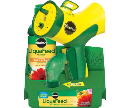 The LiquaFeed All Purpose Plant Food Advance Starter Kit contains one garden feeder, one 16 oz. bottle of LiquaFeed All Purpose Plant Food and one dosing spoon. The dosing spoon allows product to be used with a watering can. For all flowers, vegetables, trees, shrubs, and houseplants. Feed every two weeks. Use in-ground and in containers.