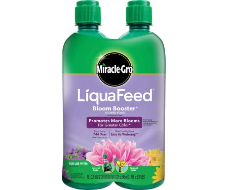 LiquaFeed Bloom Booster Flower Food Refills 12-9-6 promotes more blooms for greater color. Instantly feeds annual and perennial flowers and plants. Ready-to-use 2-pack of 16 oz. refill bottles. Each bottle feeds up to 400 sq. ft.