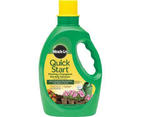 Quick Start Planting & Transplant Starting Solution 4-12-4 should be used at time of planting to prevent transplant shock. Safe for all flowers, vegetables, trees, shrubs, transplants and seedlings. Stimulates root growth for faster blooms. Mix with water to get plants off to a great start. 48 oz. bottle.