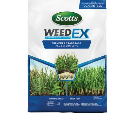 A single application of Scotts WeedEX Prevent with Halts in the early spring can prevent crabgrass and problem weeds. Rain, snow, or freezing weather won’t affect the product performance, so you don’t have to worry about the elements after you’ve applied. Apply easily with a Scotts broadcast, drop, hand-held, or Wizz spreader to all lawn and grass types (except dichondra or bentgrass).